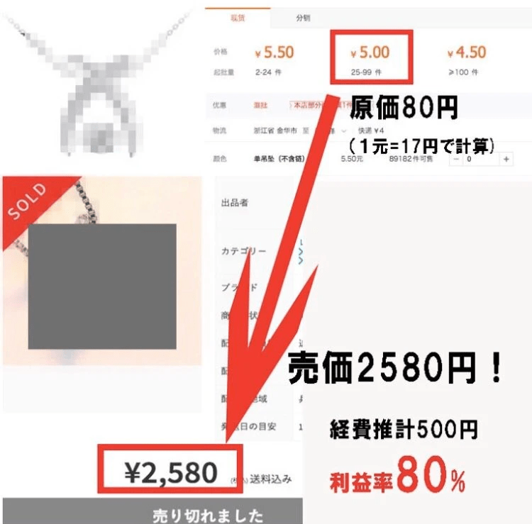 このように80円で仕入れて2,500円で売ることも可能なんです!